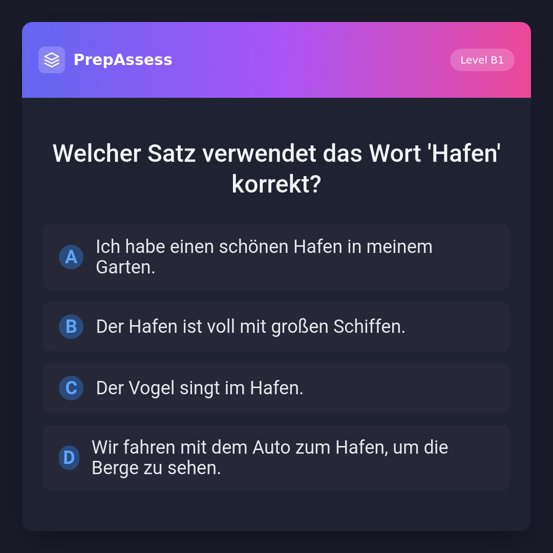 Welcher Satz verwendet das Wort 'Hafen' korrekt?