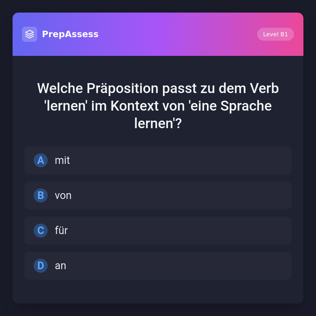 Welche Präposition passt zu dem Verb 'lernen' im Kontext von 'eine Sprache lernen'?