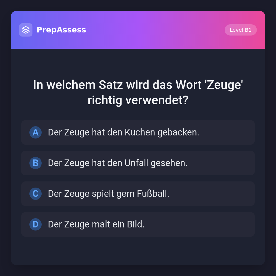 In welchem Satz wird das Wort 'Zeuge' richtig verwendet?