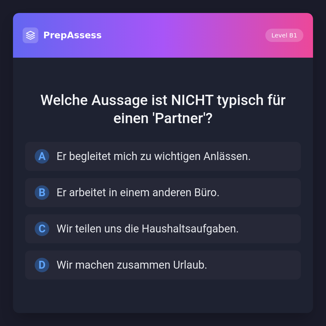 Welche Aussage ist NICHT typisch für einen 'Partner'?