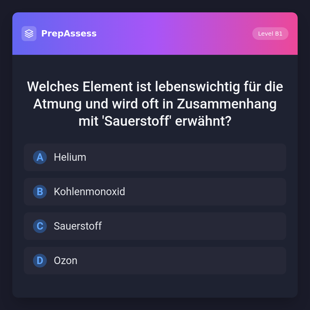 Welches Element ist lebenswichtig für die Atmung und wird oft in Zusammenhang mit 'Sauerstoff' erwähnt?