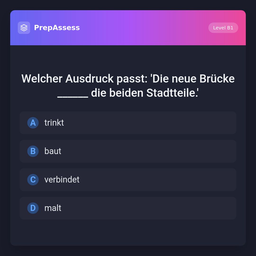 Welcher Ausdruck passt: 'Die neue Brücke ______ die beiden Stadtteile.'