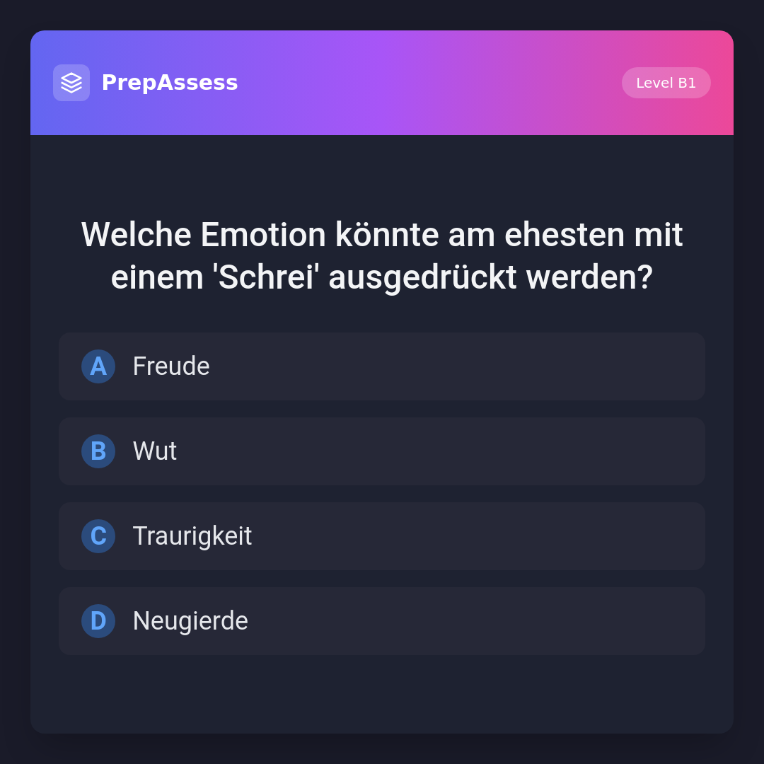 Welche Emotion könnte am ehesten mit einem 'Schrei' ausgedrückt werden?