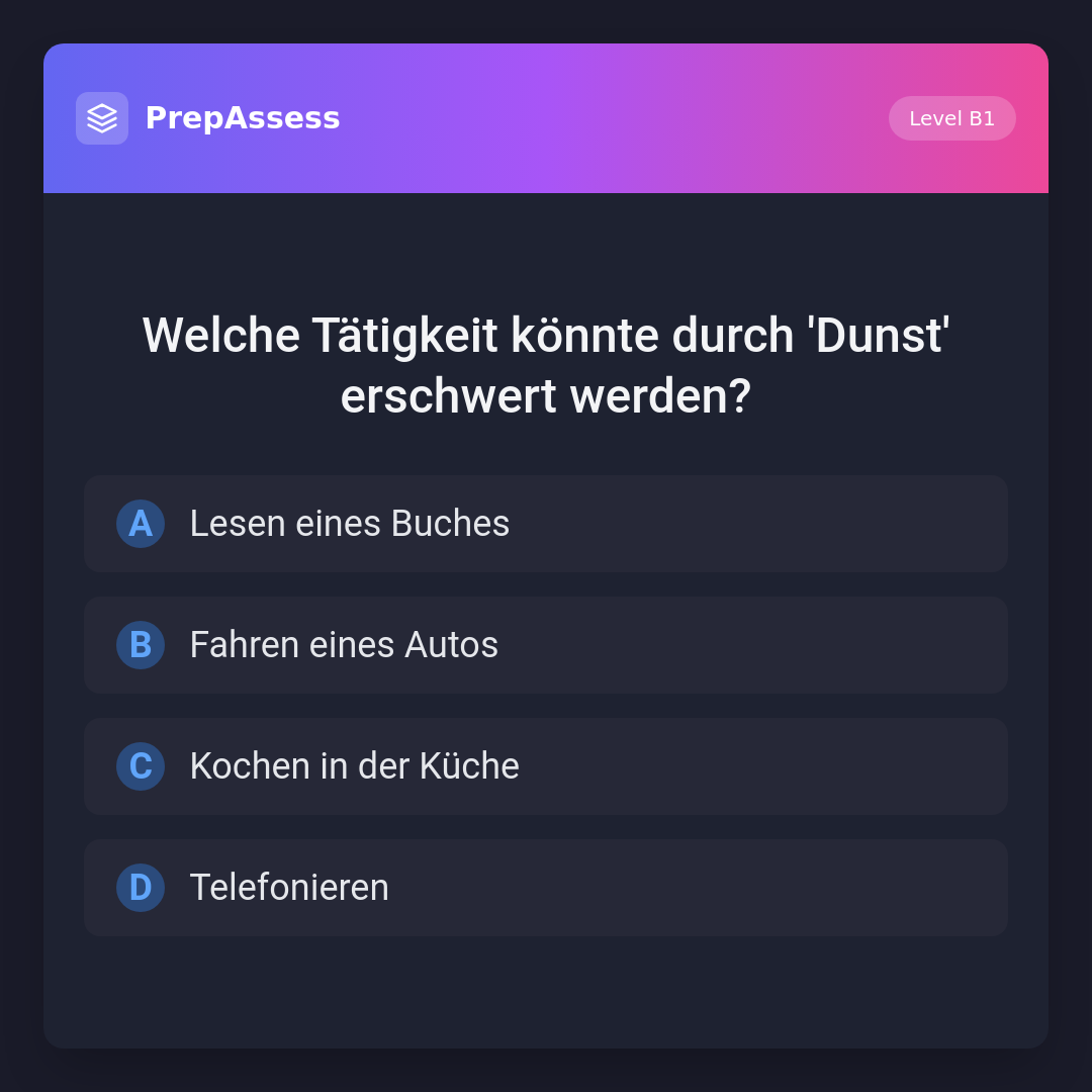 Welche Tätigkeit könnte durch 'Dunst' erschwert werden?