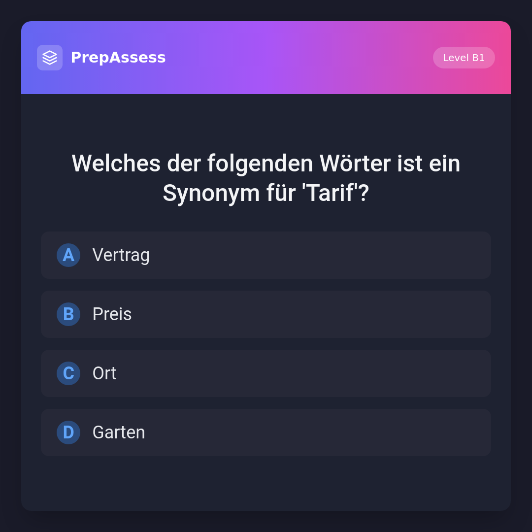 Welches der folgenden Wörter ist ein Synonym für 'Tarif'?