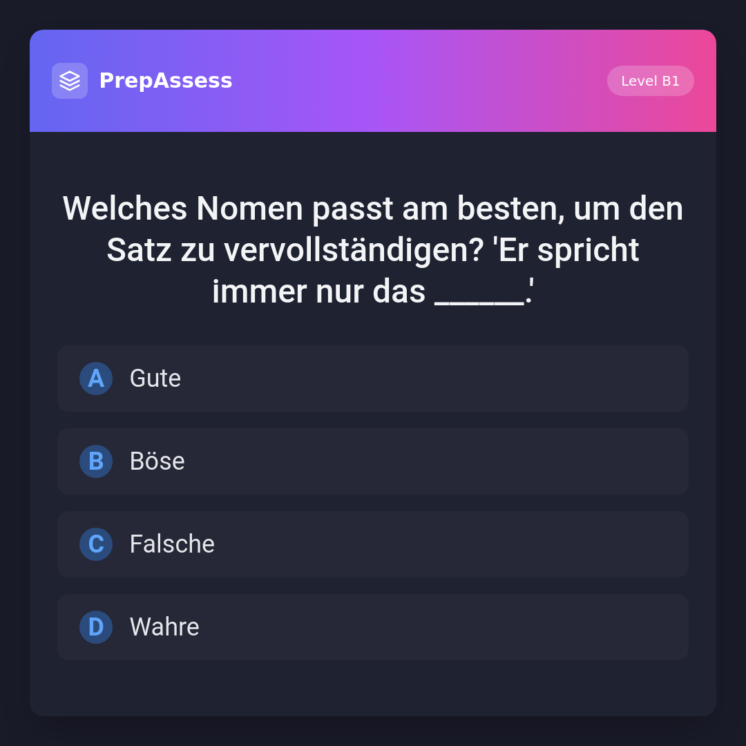 Welches Nomen passt am besten, um den Satz zu vervollständigen? 'Er spricht immer nur das ______.'
