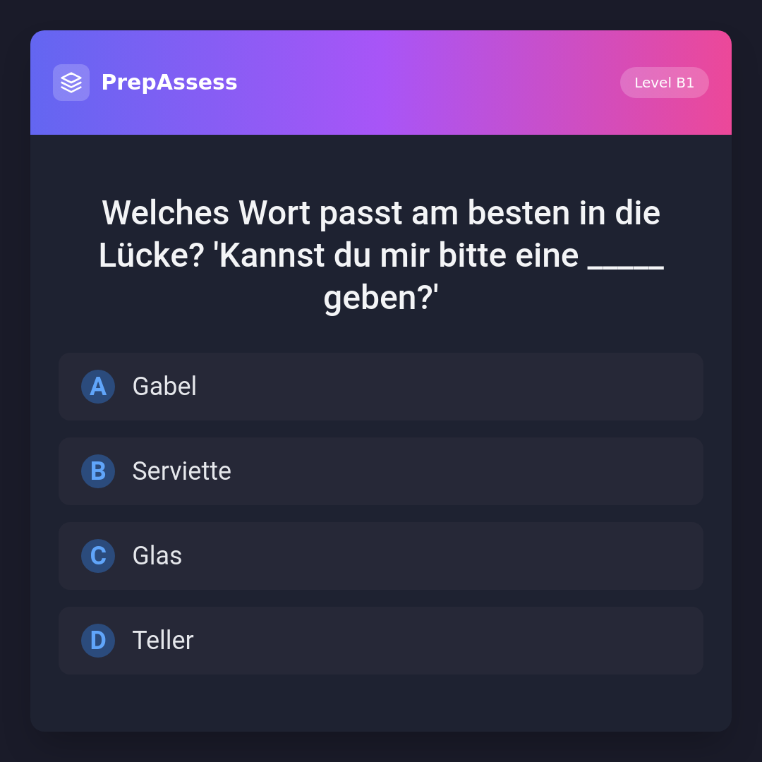 Welches Wort passt am besten in die Lücke? 'Kannst du mir bitte eine _____ geben?'