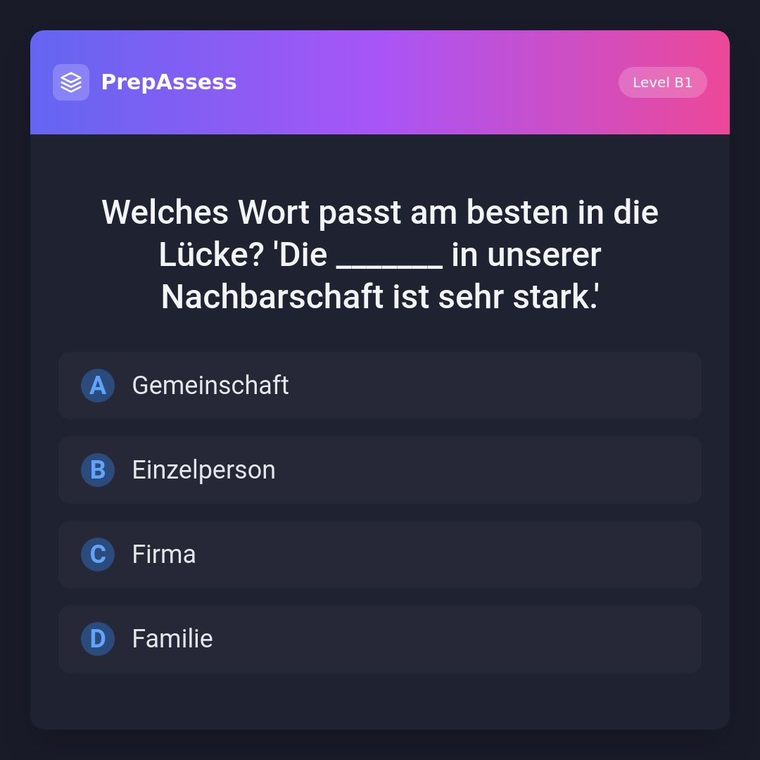 Welches Wort passt am besten in die Lücke? 'Die _______ in unserer Nachbarschaft ist sehr stark.'