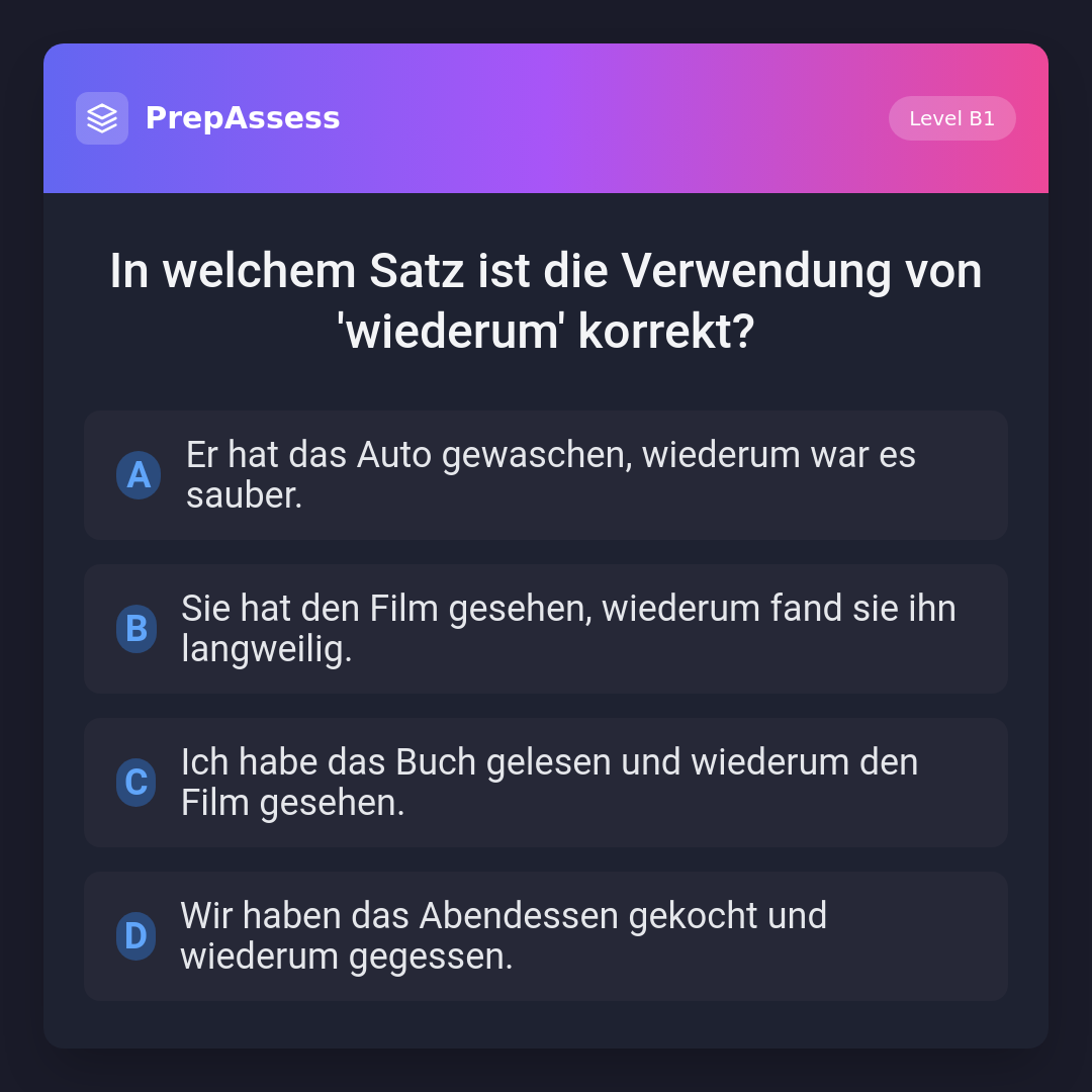 In welchem Satz ist die Verwendung von 'wiederum' korrekt?