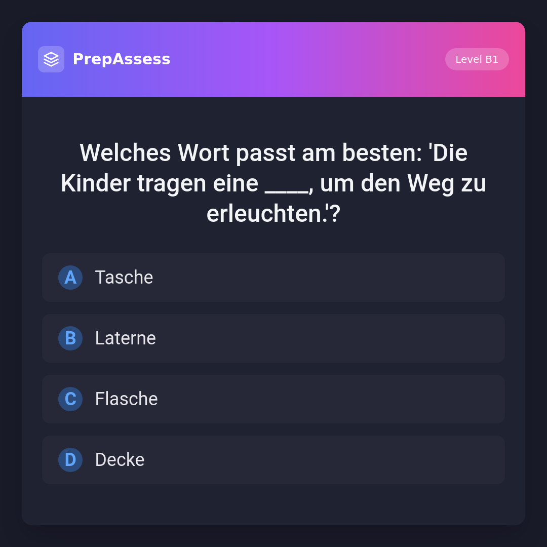 Welches Wort passt am besten: 'Die Kinder tragen eine ____, um den Weg zu erleuchten.'?