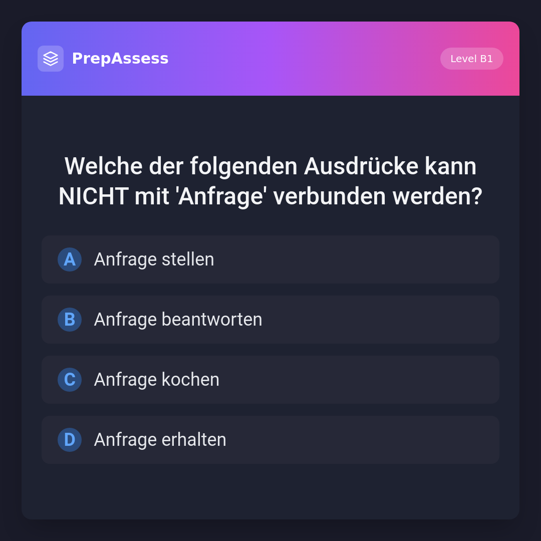 Welche der folgenden Ausdrücke kann NICHT mit 'Anfrage' verbunden werden?