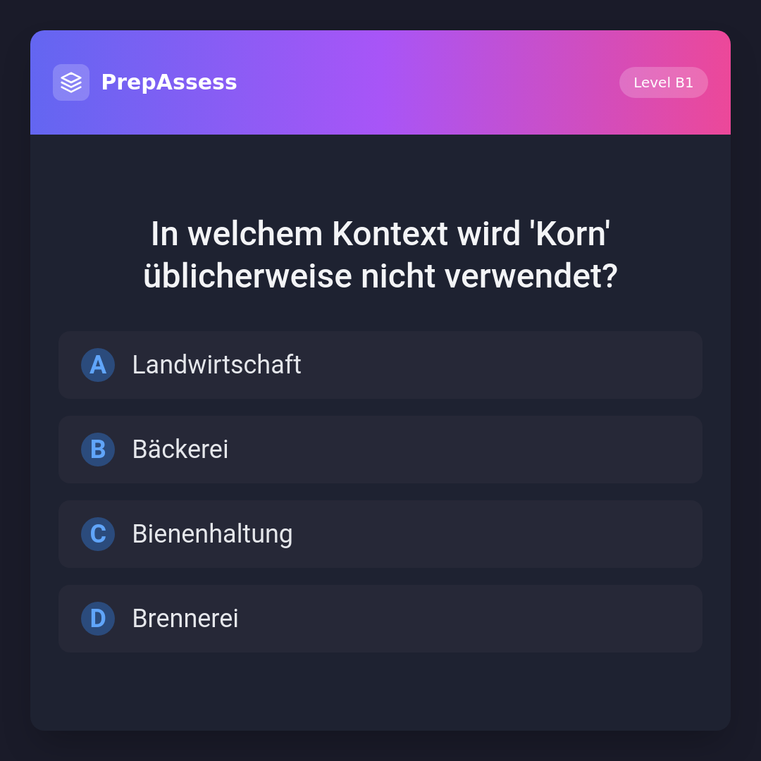 In welchem Kontext wird 'Korn' üblicherweise nicht verwendet?