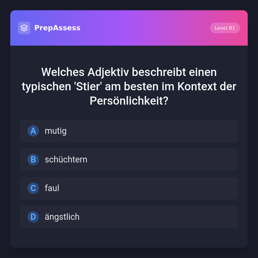 Welches Adjektiv beschreibt einen typischen 'Stier' am besten im Kontext der Persönlichkeit?