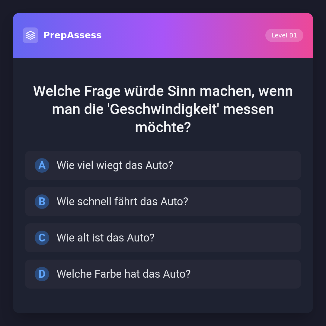Welche Frage würde Sinn machen, wenn man die 'Geschwindigkeit' messen möchte?