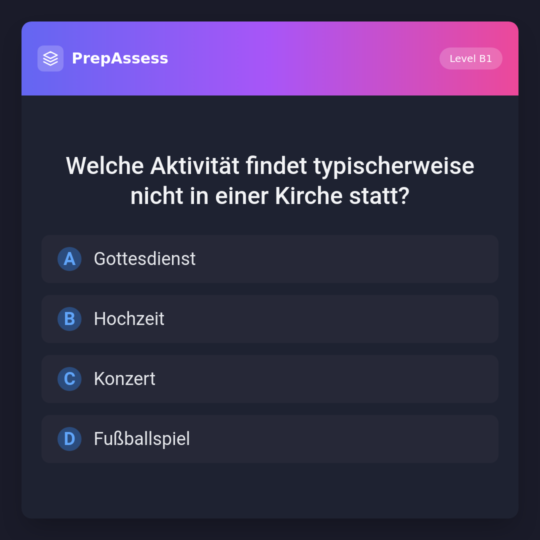 Welche Aktivität findet typischerweise nicht in einer Kirche statt?