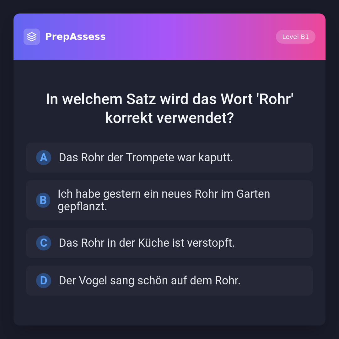 In welchem Satz wird das Wort 'Rohr' korrekt verwendet?