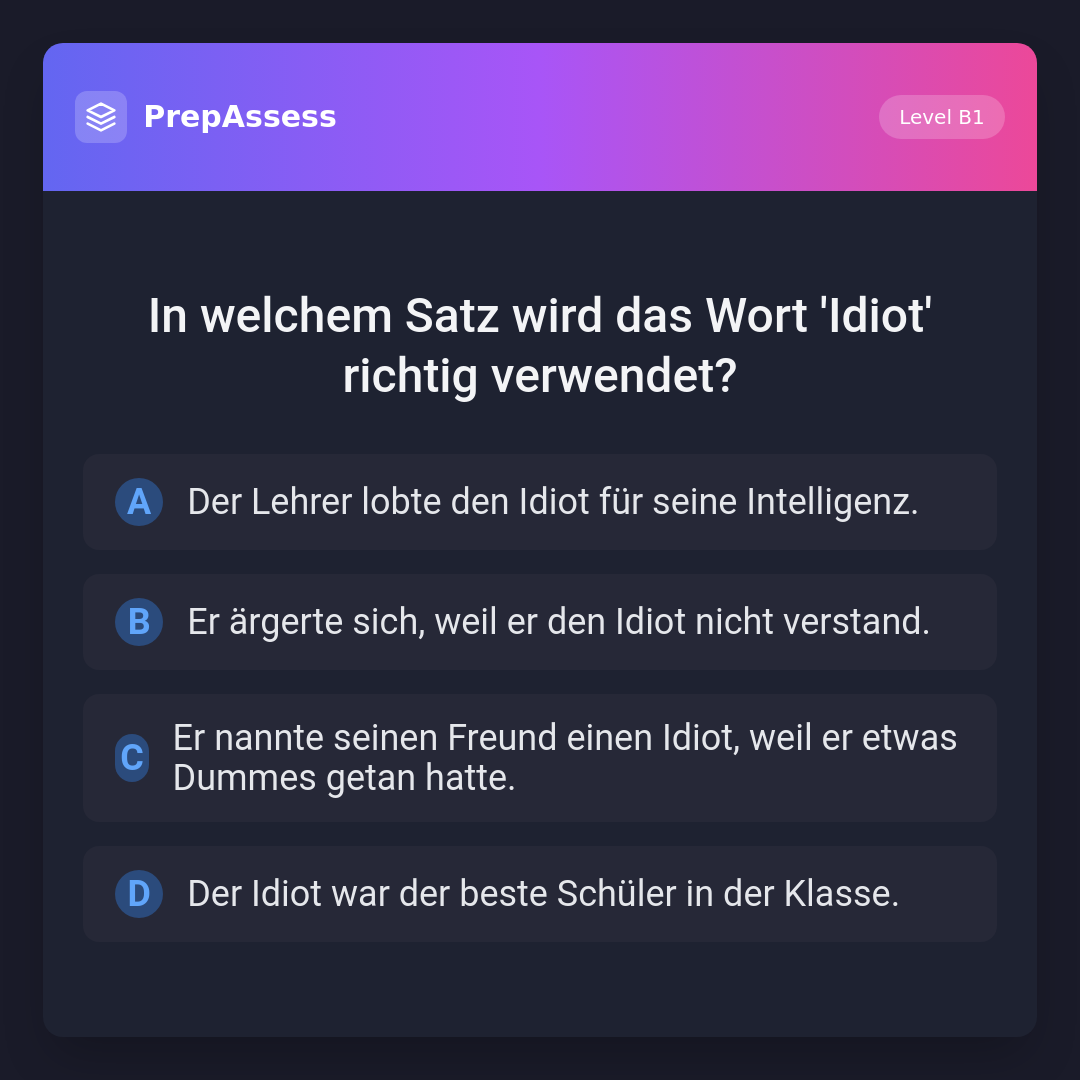 In welchem Satz wird das Wort 'Idiot' richtig verwendet?