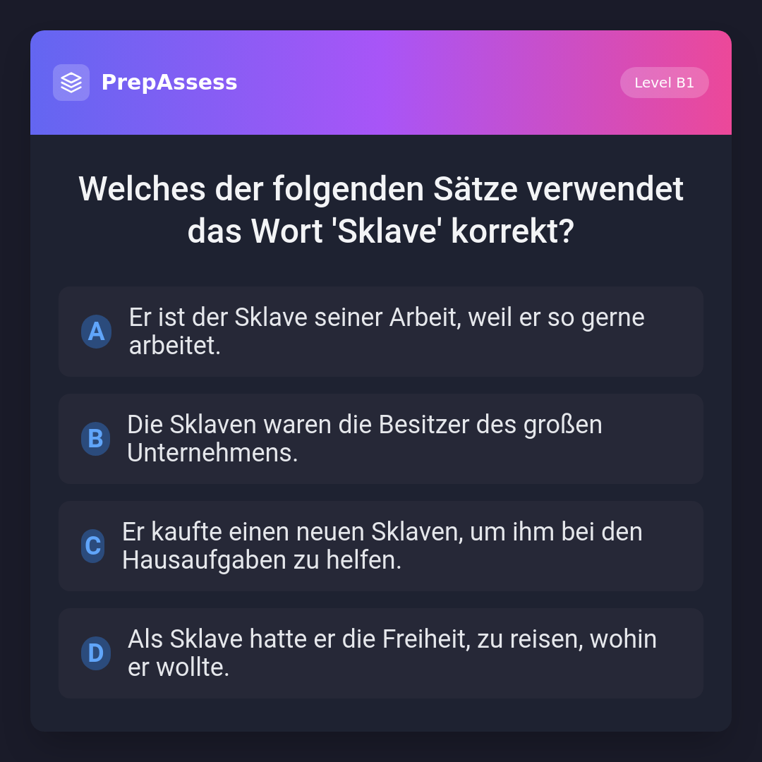 Welches der folgenden Sätze verwendet das Wort 'Sklave' korrekt?