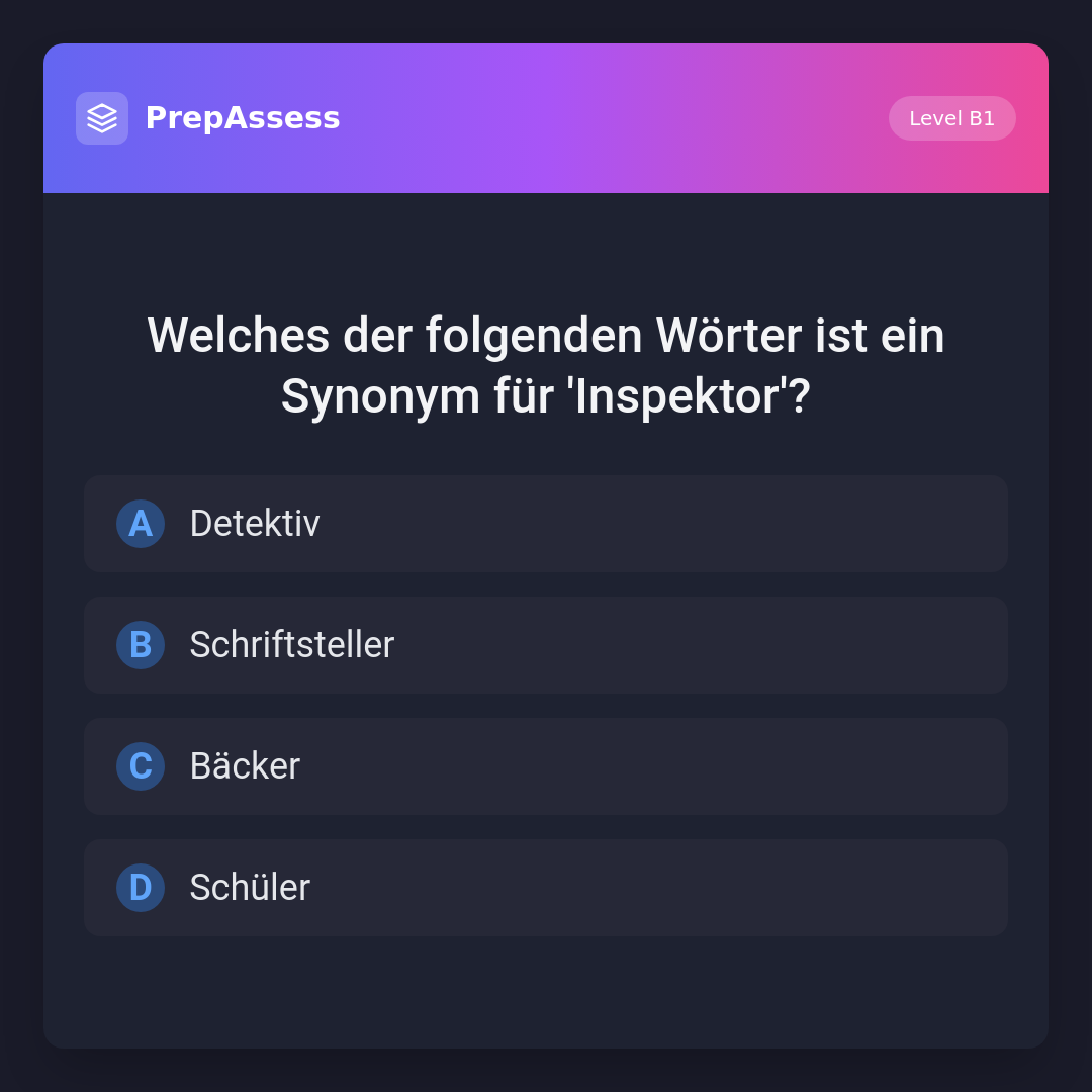 Welches der folgenden Wörter ist ein Synonym für 'Inspektor'?