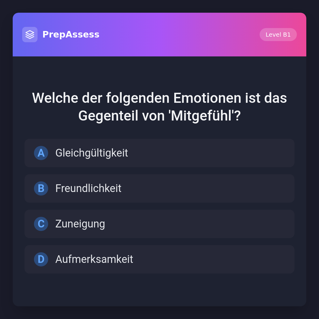 Welche der folgenden Emotionen ist das Gegenteil von 'Mitgefühl'?