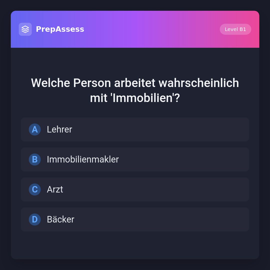 Welche Person arbeitet wahrscheinlich mit 'Immobilien'?