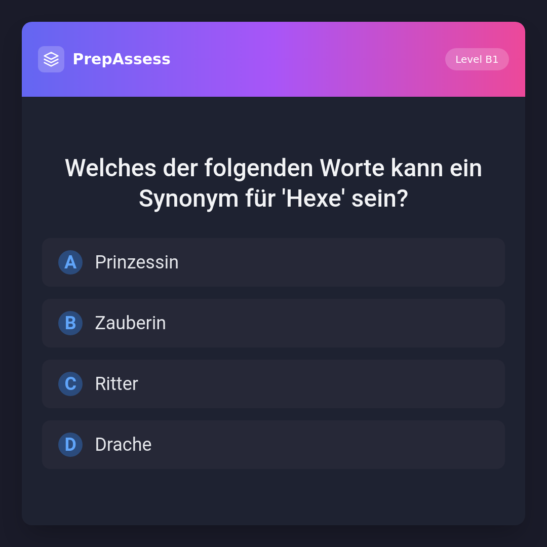Welches der folgenden Worte kann ein Synonym für 'Hexe' sein?