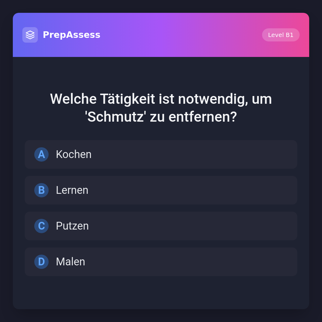 Welche Tätigkeit ist notwendig, um 'Schmutz' zu entfernen?