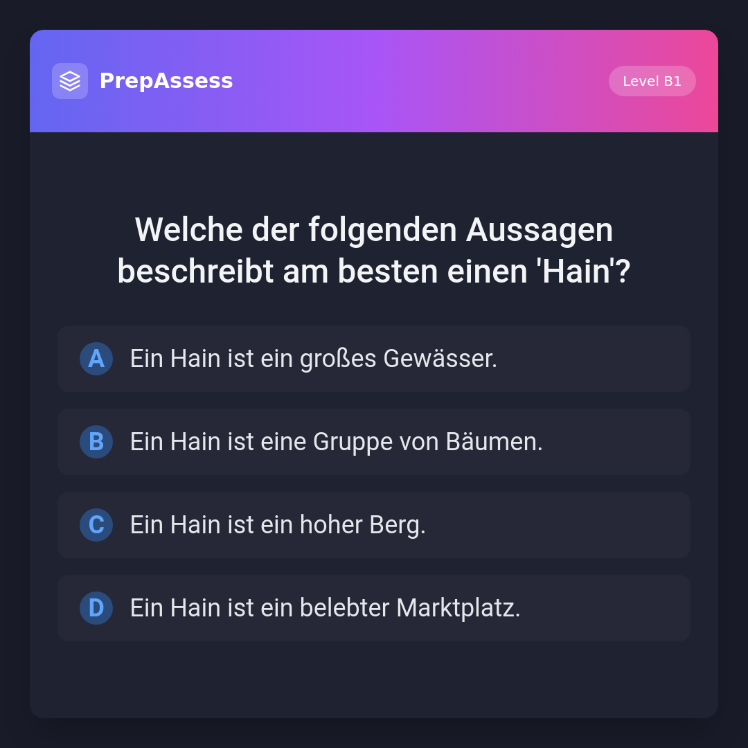 Welche der folgenden Aussagen beschreibt am besten einen 'Hain'?