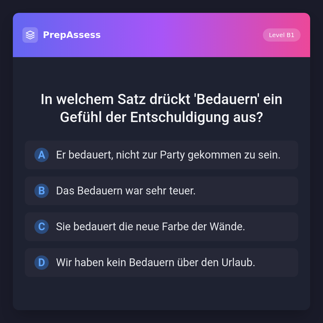 In welchem Satz drückt 'Bedauern' ein Gefühl der Entschuldigung aus?