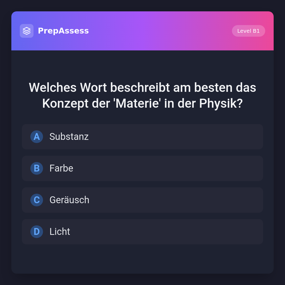 Welches Wort beschreibt am besten das Konzept der 'Materie' in der Physik?