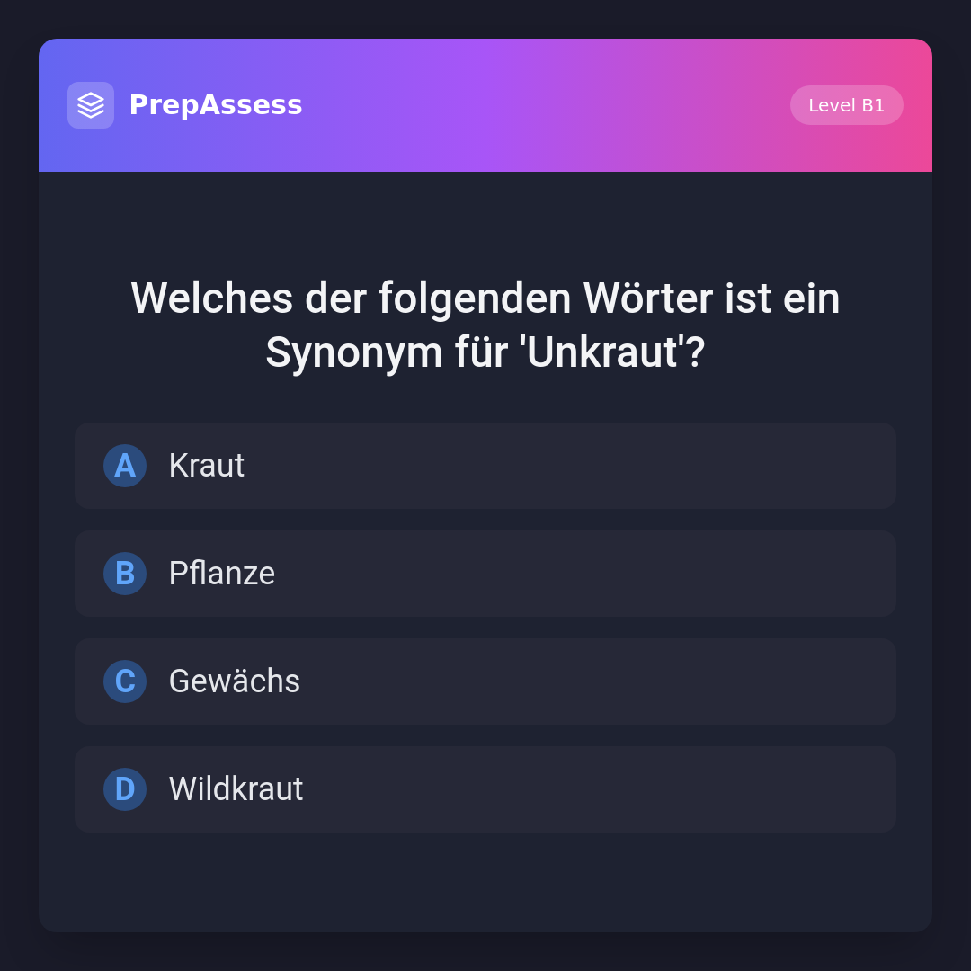 Welches der folgenden Wörter ist ein Synonym für 'Unkraut'?