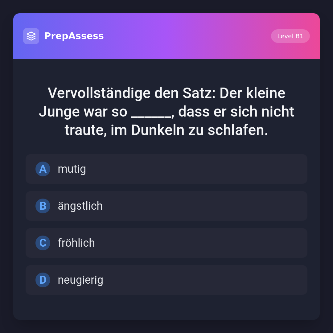 Vervollständige den Satz: Der kleine Junge war so ______, dass er sich nicht traute, im Dunkeln zu schlafen.