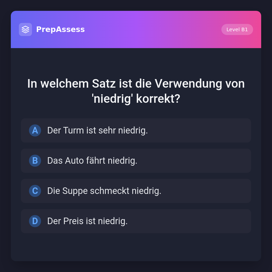 In welchem Satz ist die Verwendung von 'niedrig' korrekt?