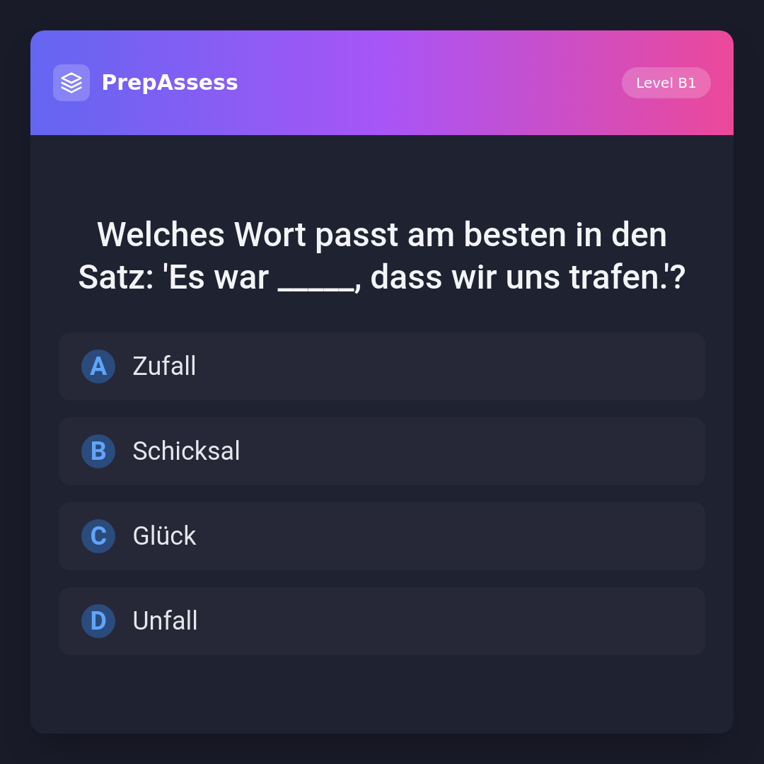 Welches Wort passt am besten in den Satz: 'Es war _____, dass wir uns trafen.'?