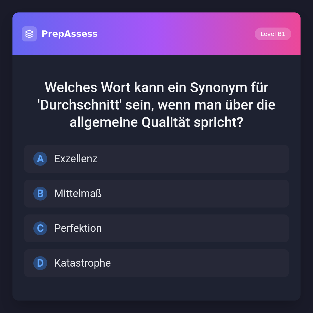 Welches Wort kann ein Synonym für 'Durchschnitt' sein, wenn man über die allgemeine Qualität spricht?