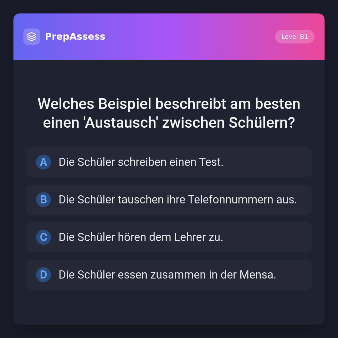 Welches Beispiel beschreibt am besten einen 'Austausch' zwischen Schülern?