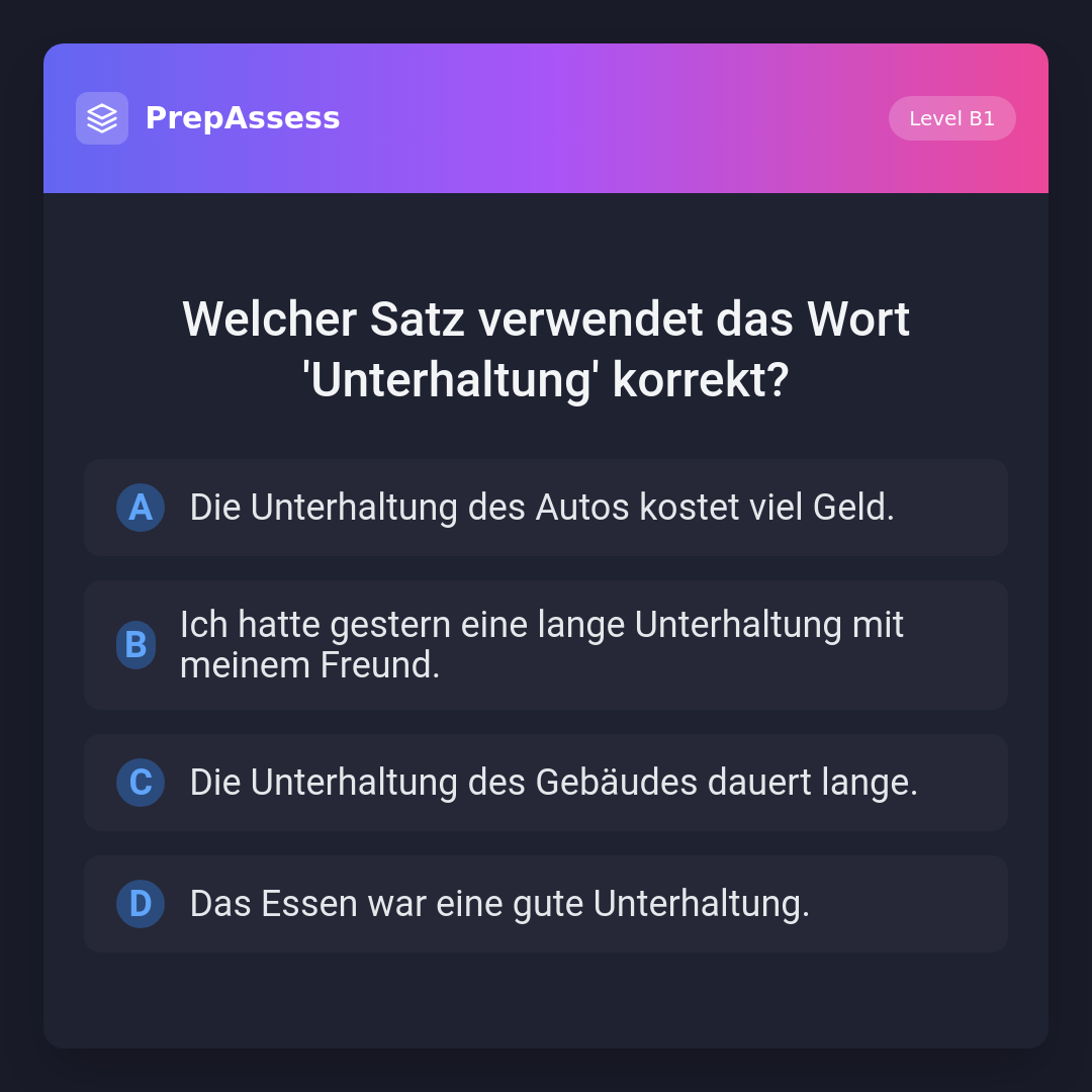 Welcher Satz verwendet das Wort 'Unterhaltung' korrekt?