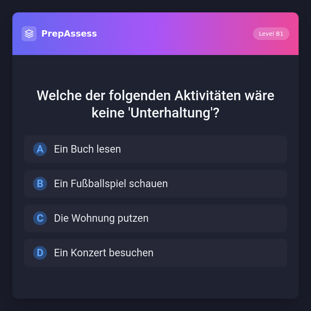 Welche der folgenden Aktivitäten wäre keine 'Unterhaltung'?