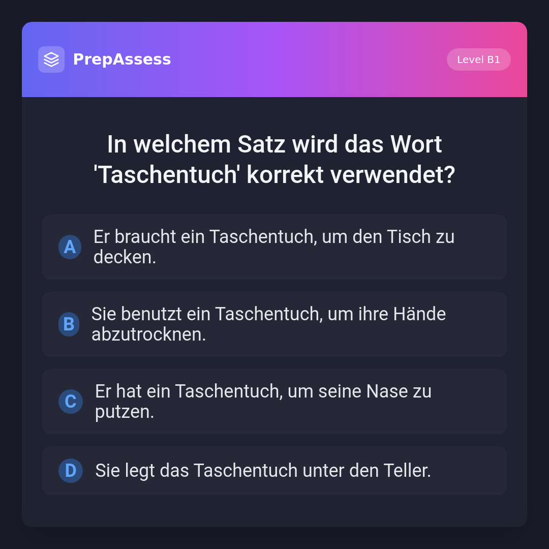 In welchem Satz wird das Wort 'Taschentuch' korrekt verwendet?
