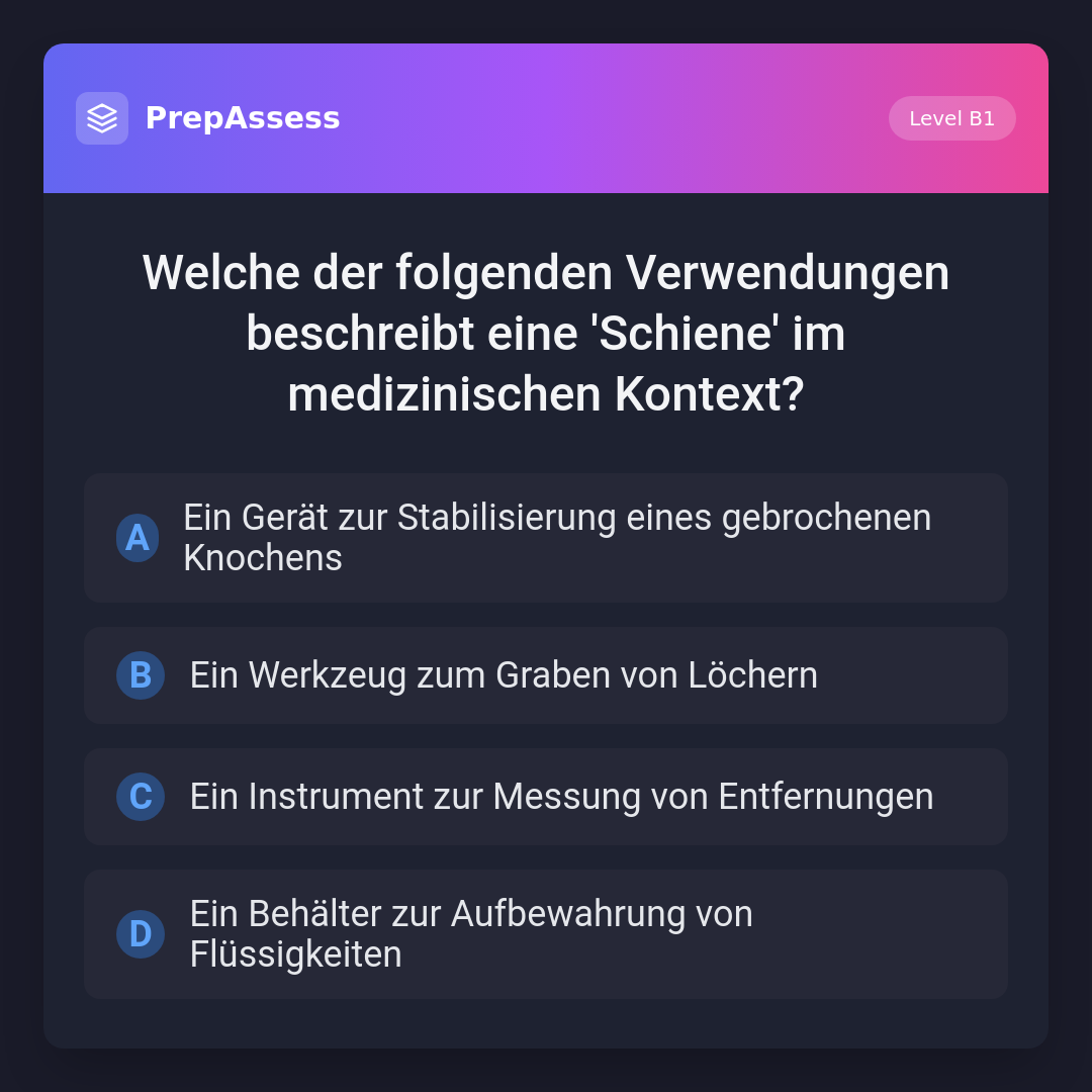 Welche der folgenden Verwendungen beschreibt eine 'Schiene' im medizinischen Kontext?