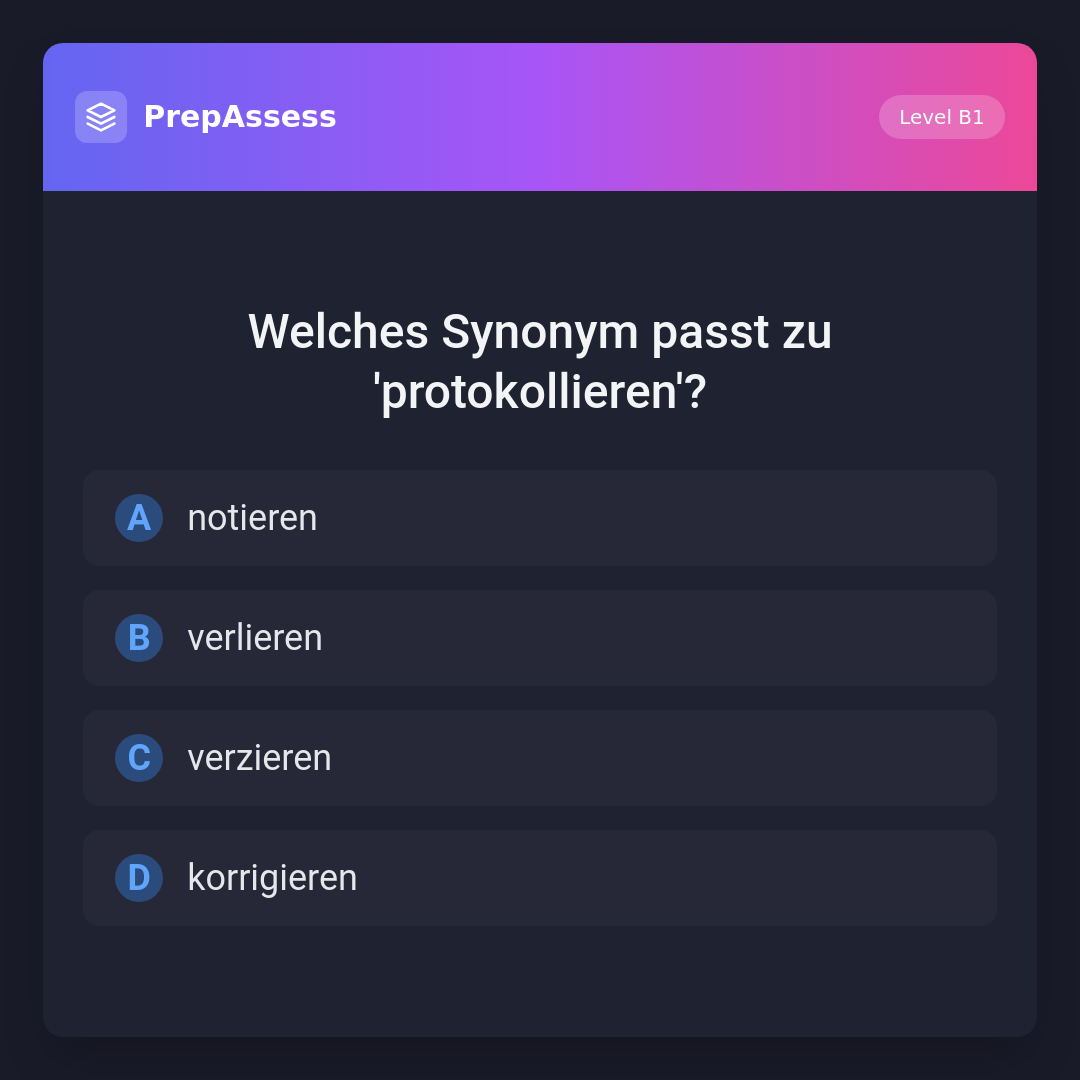 Welches Synonym passt zu 'protokollieren'?