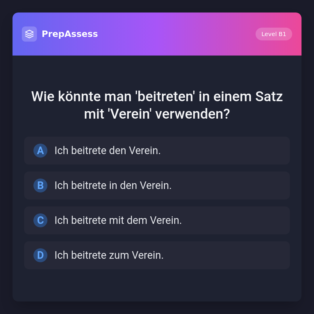 Wie könnte man 'beitreten' in einem Satz mit 'Verein' verwenden?