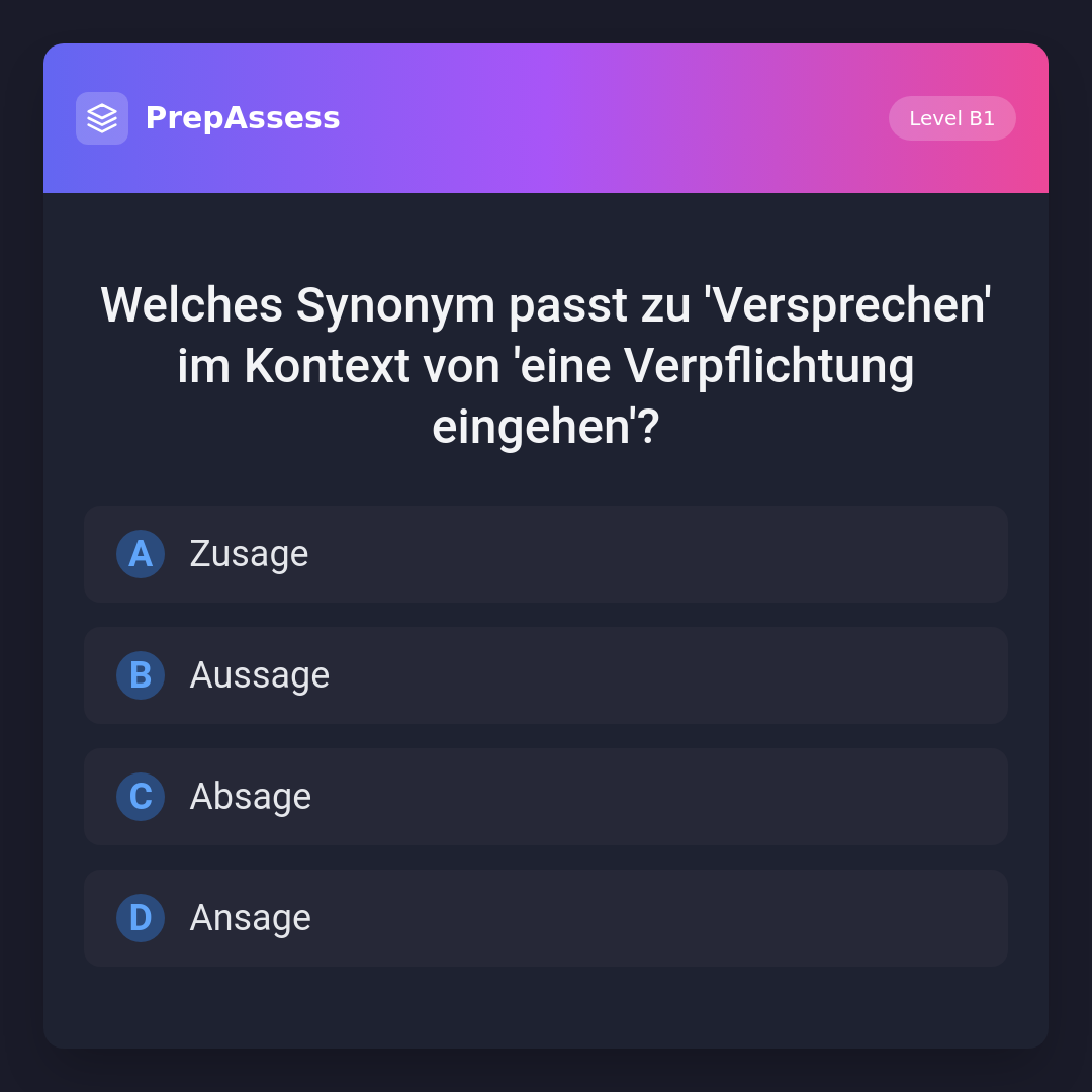 Welches Synonym passt zu 'Versprechen' im Kontext von 'eine Verpflichtung eingehen'?