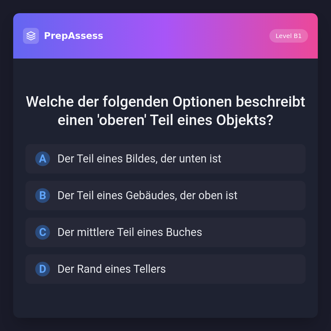 Welche der folgenden Optionen beschreibt einen 'oberen' Teil eines Objekts?