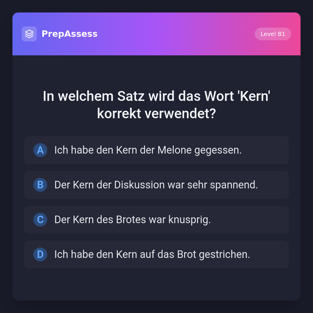 In welchem Satz wird das Wort 'Kern' korrekt verwendet?