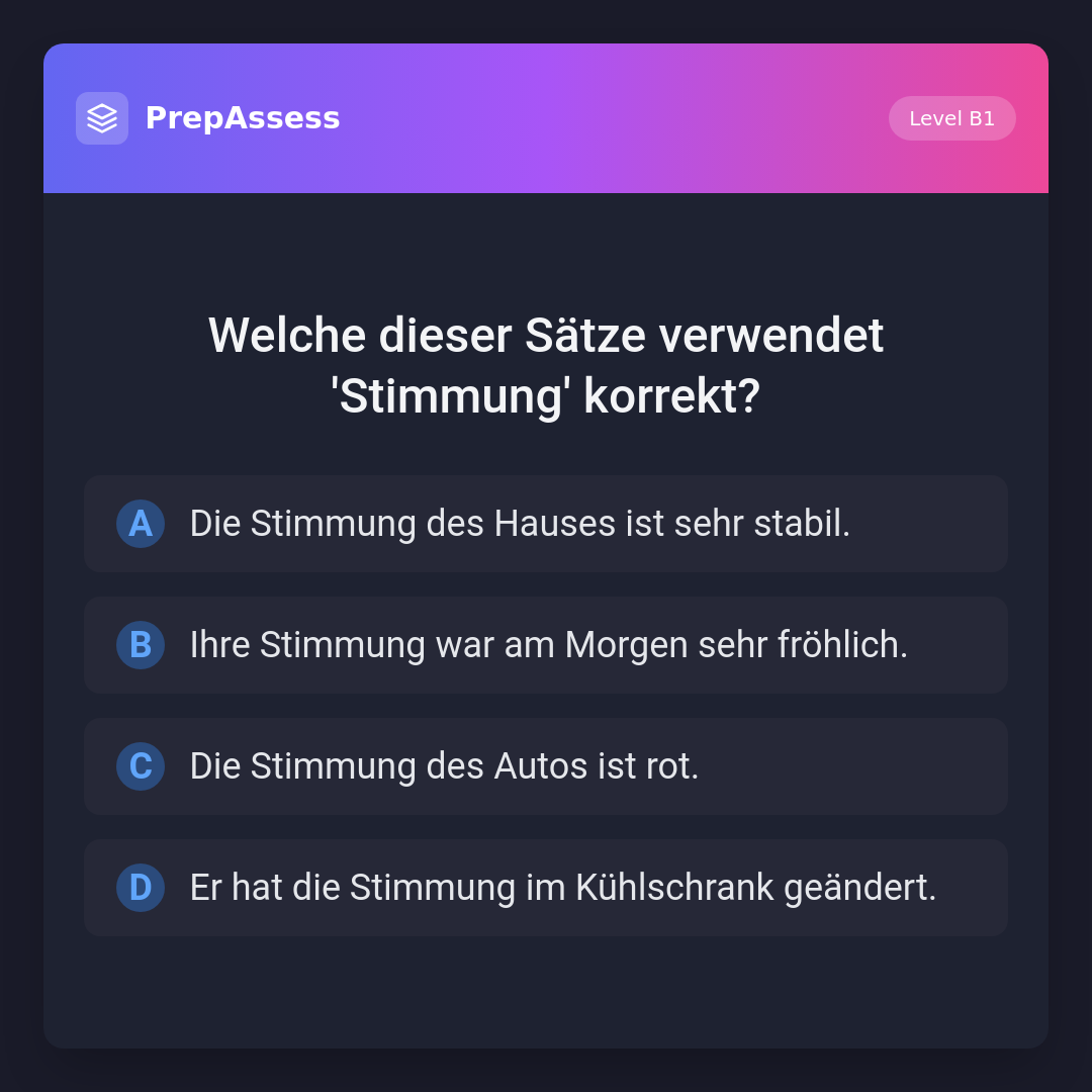 Welche dieser Sätze verwendet 'Stimmung' korrekt?
