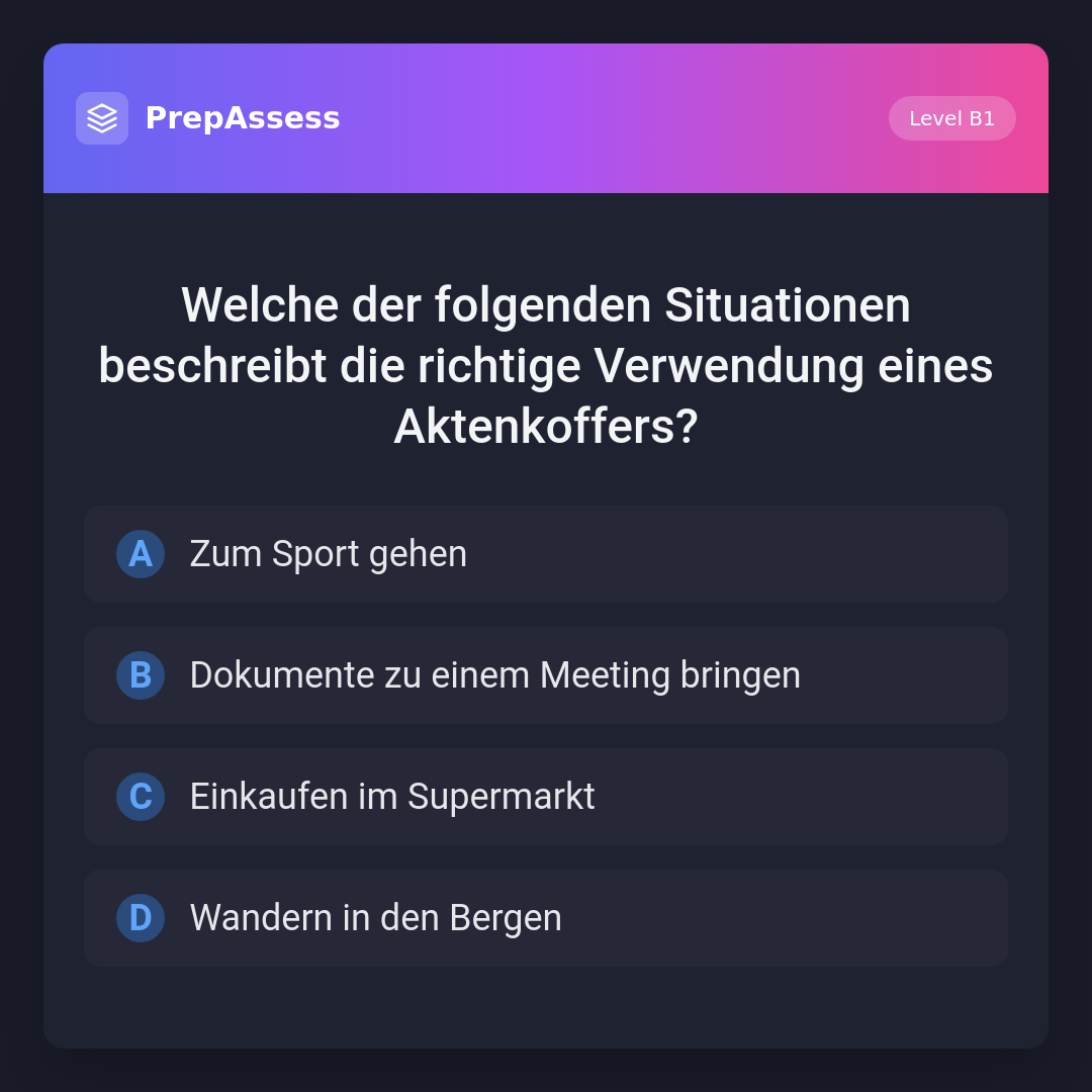 Welche der folgenden Situationen beschreibt die richtige Verwendung eines Aktenkoffers?