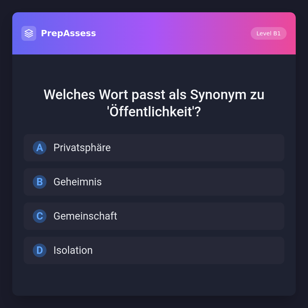 Welches Wort passt als Synonym zu 'Öffentlichkeit'?