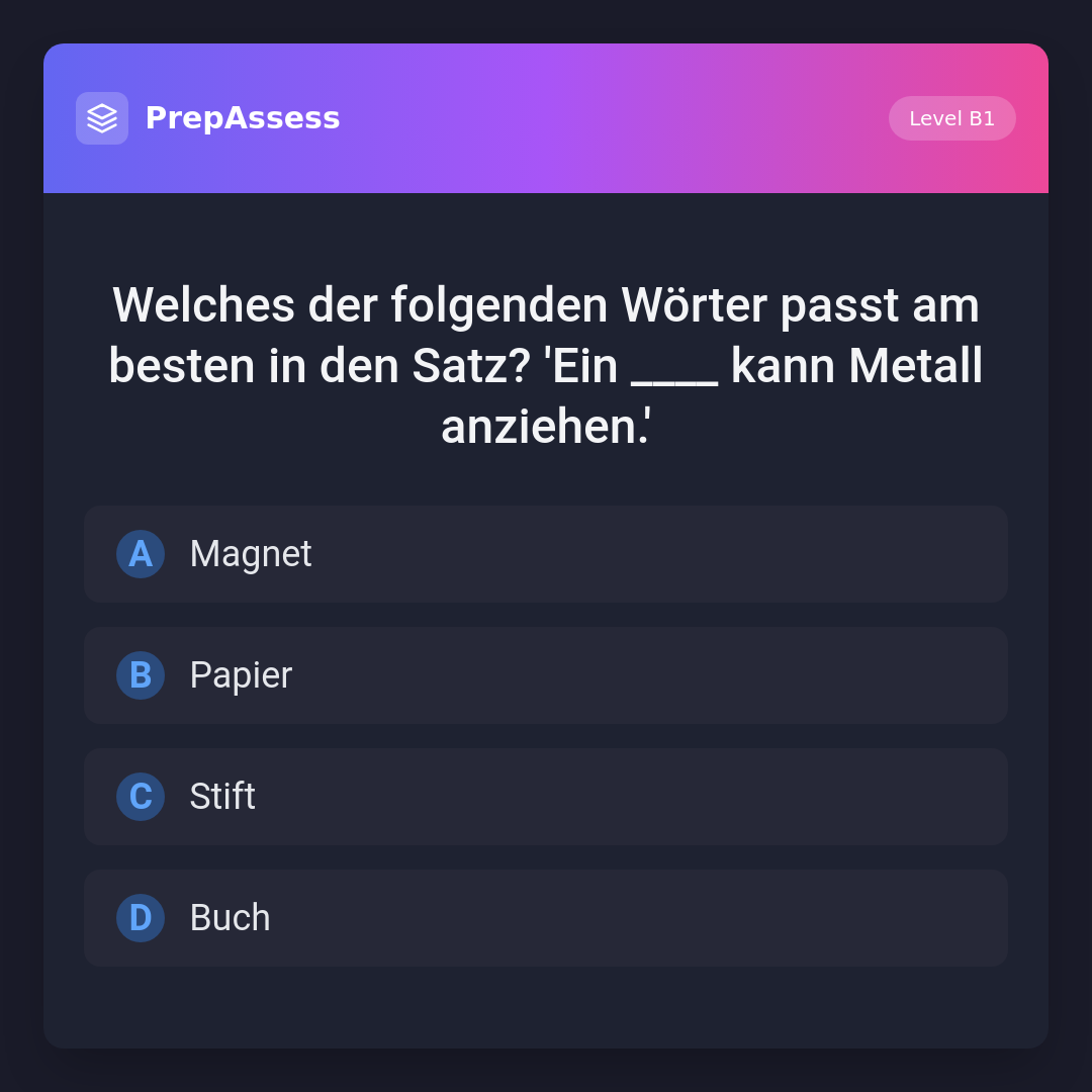 Welches der folgenden Wörter passt am besten in den Satz? 'Ein ____ kann Metall anziehen.'
