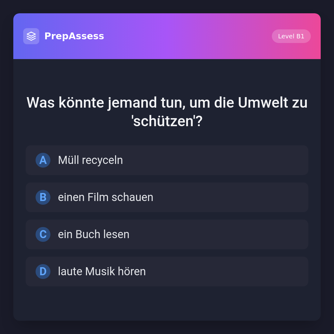 Was könnte jemand tun, um die Umwelt zu 'schützen'?